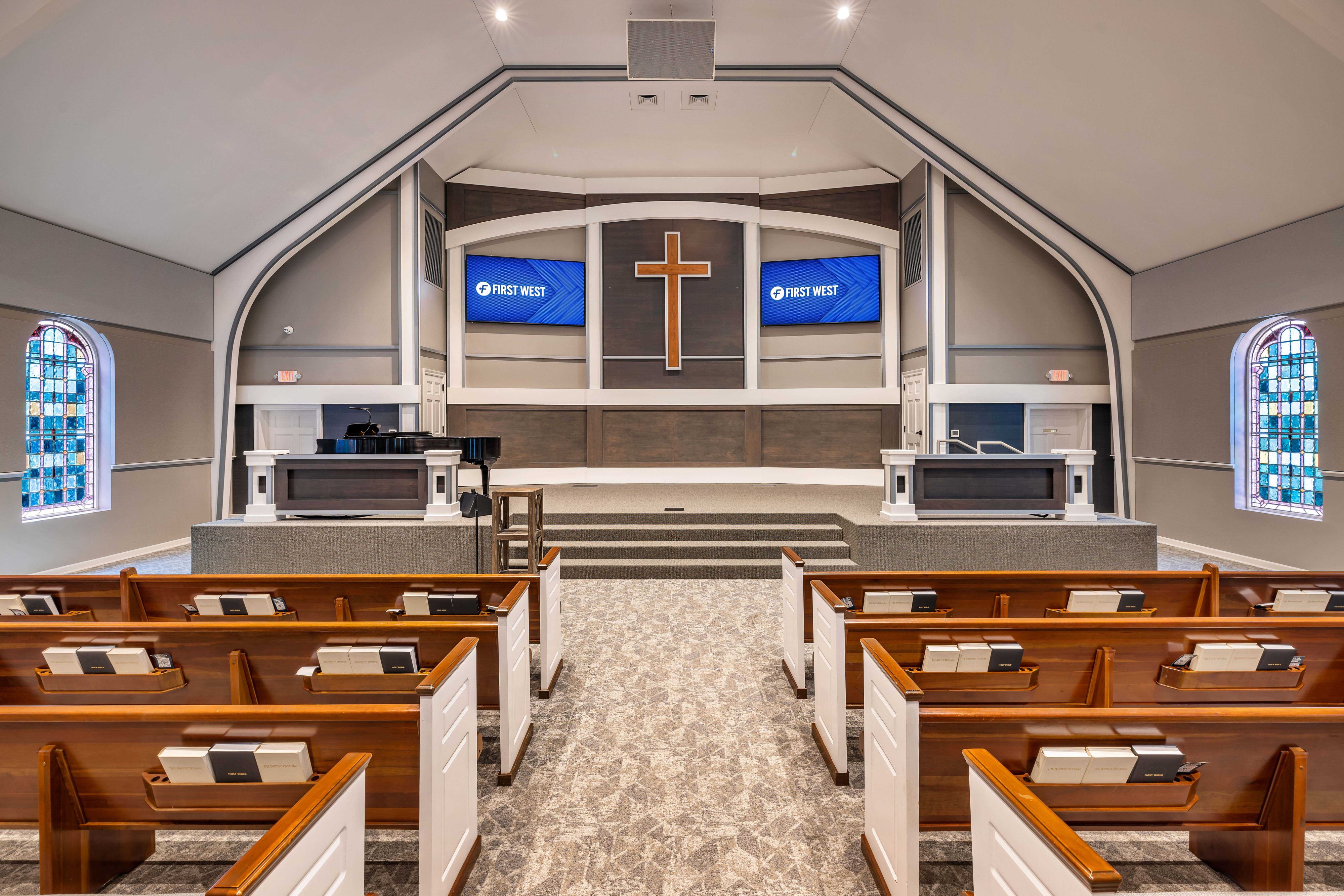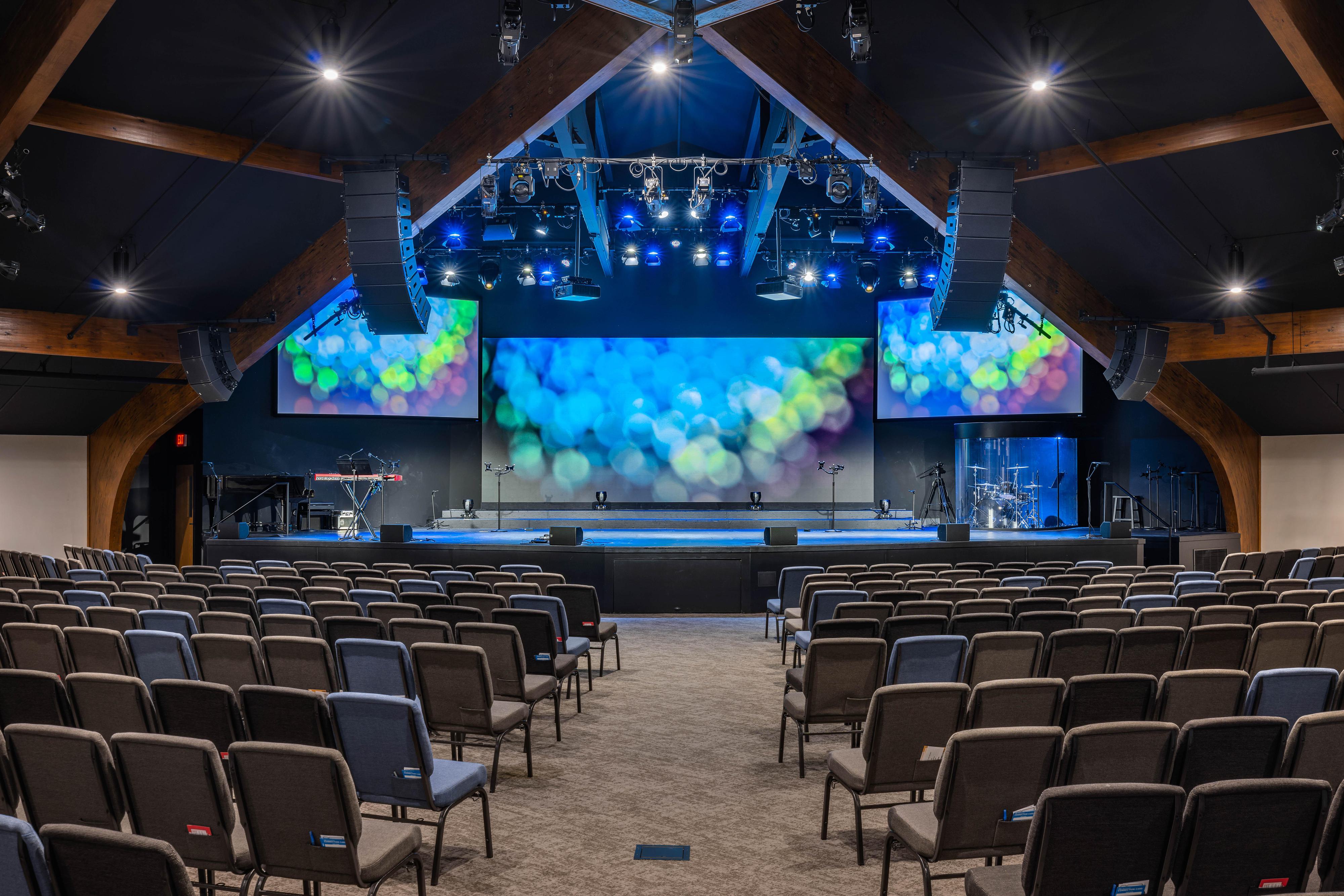 First West Monroe in West Monroe, LA, contracted Paragon 360 for extensive campus renovation in 2018 including the main sanctuary, hallways, common spaces, the Feazel Chapel and new exterior entrances. The project started with full campus master planning with Paragon 360. The multi-million dollar, multi-phased project included new audio, video and lighting systems, extensive acoustical work, rigging systems, interior design, custom fabricated architectural elements and modular staging with LED wall backgrounds provided by ReveLux. Design work started in 2019 and the project saw delays due to the pandemic. The Feazel Chapel (See Feazel Profile)renovation was completed in October 2022, with Sanctuary renovation demolition starting in Easter of 2023 and project completion in November of 2023. (See Main Project Profile).
