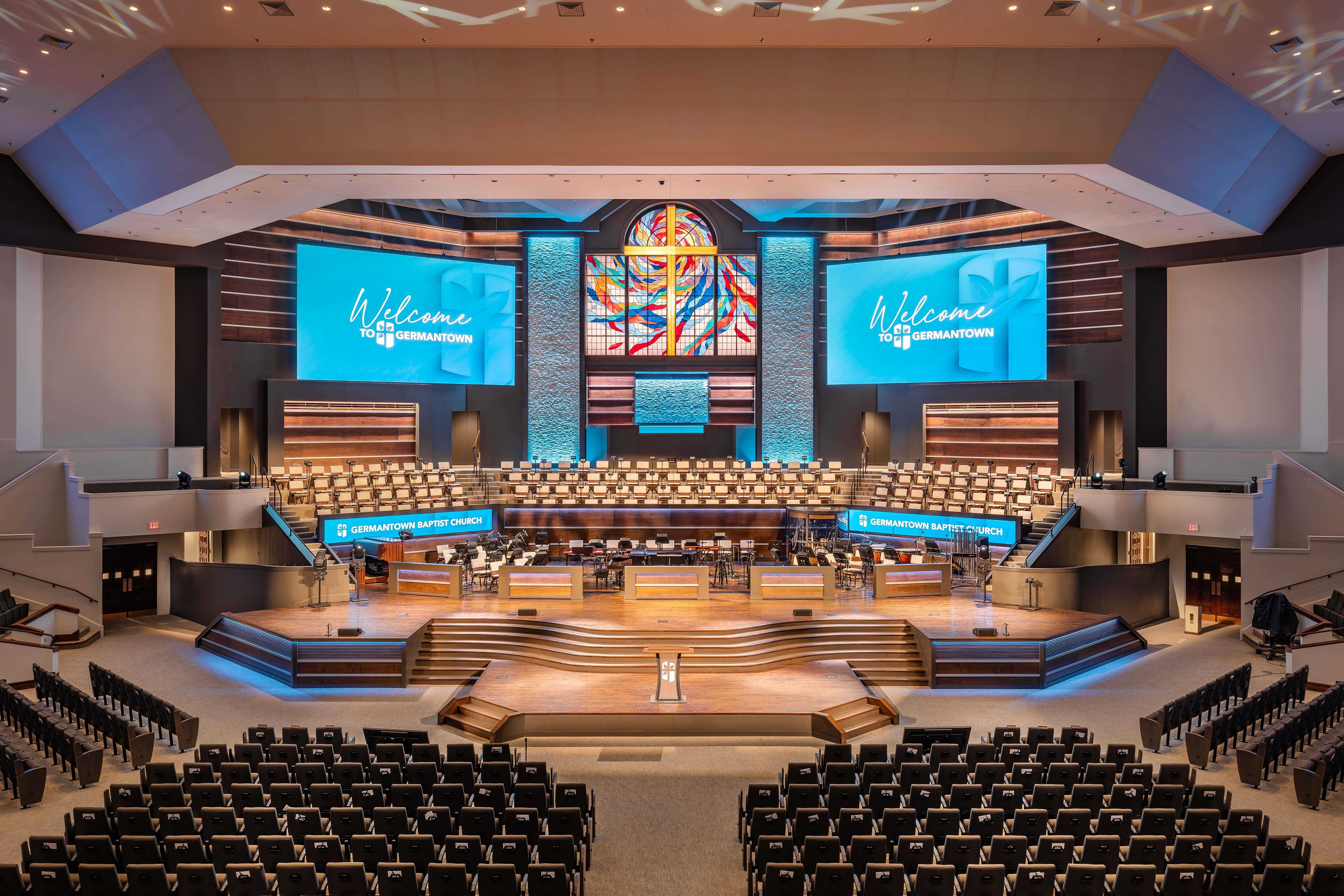 Germantown Baptist Church, Memphis, TN contracted Paragon 360 for a renovation of their sanctuary and lobby space. The multi-million dollar project included new audio, video and lighting systems, LED house-lighting, LED video displays by ReveLux, extensive acoustical work, and Paragon's custom fabricated architectural elements throughout the space. Paragon worked alongside MNB Architecture on the project and together delivered an incredible sanctuary renovation. See Profile