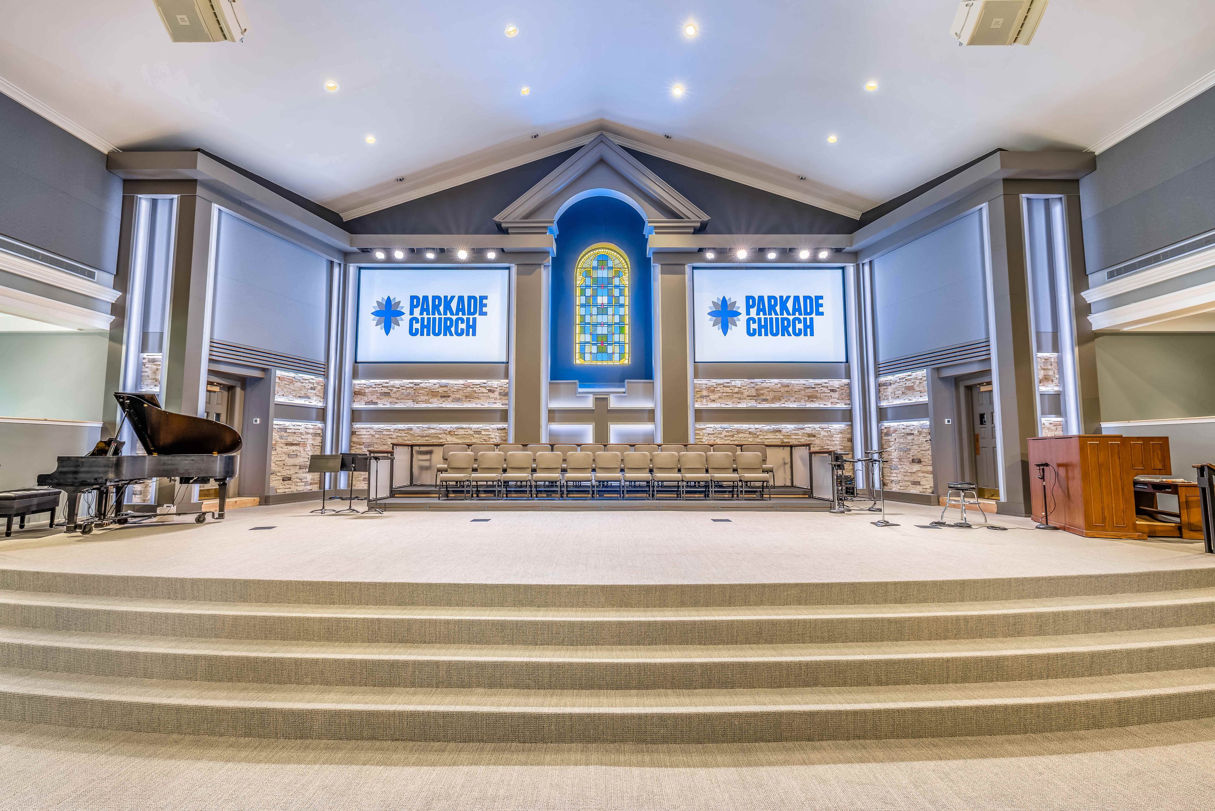 Paragon 360 was contracted by Parkade Baptist Church in Columbia, MO for a renovation of its main platform space. The project that was completed in June of 2025, included Paragon's signature, custom fabricated, illuminated, architectural elements, modular choir risers, extensive acoustical along with lighting and rigging upgrades. With Paragon's custom fabrication, the timeline for this renovation will be less than four months. SEE PROFILE.
