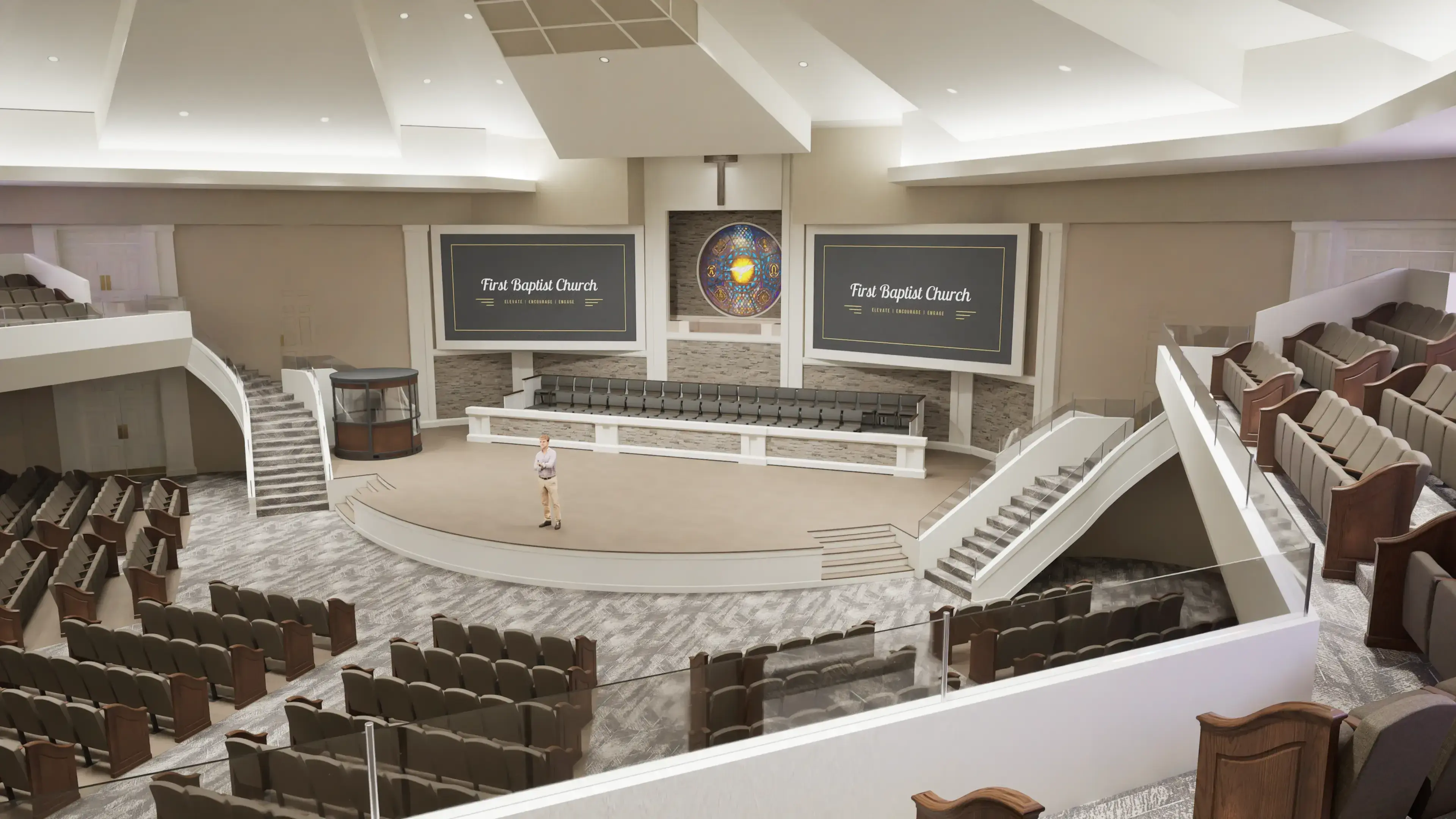 First Baptist Church, Paris TX has contracted with Paragon 360 for a renovation of their main sanctuary to include interior design work, custom fabrication of architectural elements, new video projection and screens, and Paragon's signature choir monitoring system.