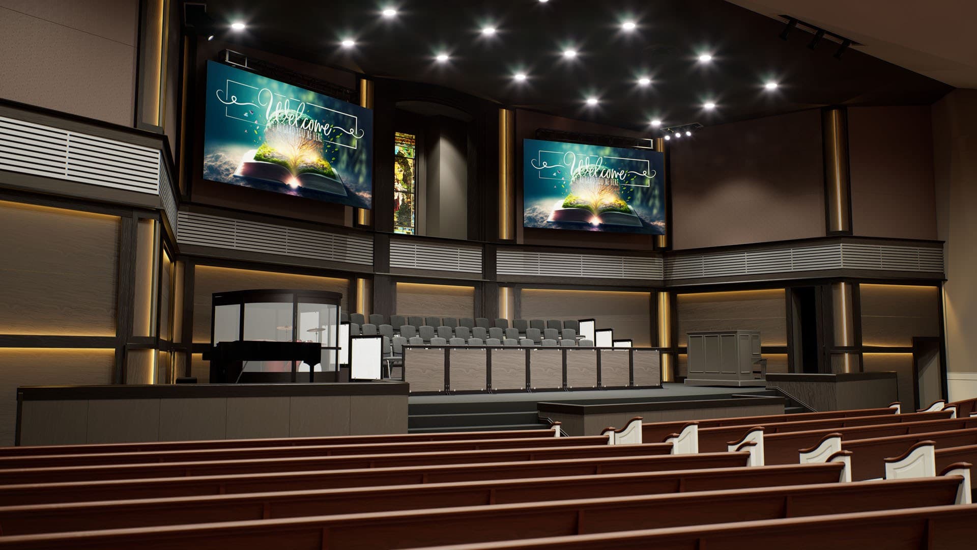 First Missionary Baptist in Huntsville, AL has contracted Paragon 360 for an renovation of their church including the main sanctuary and lobby spaces. Paragon brought in Torgerson Design Partners for architectural services. The project will include new audio, video and lighting systems, ReveLux LED walls, acoustical work, rigging systems, interior design, seating and custom fabricated architectural elements. Completion of the project is expected by late 2025.
