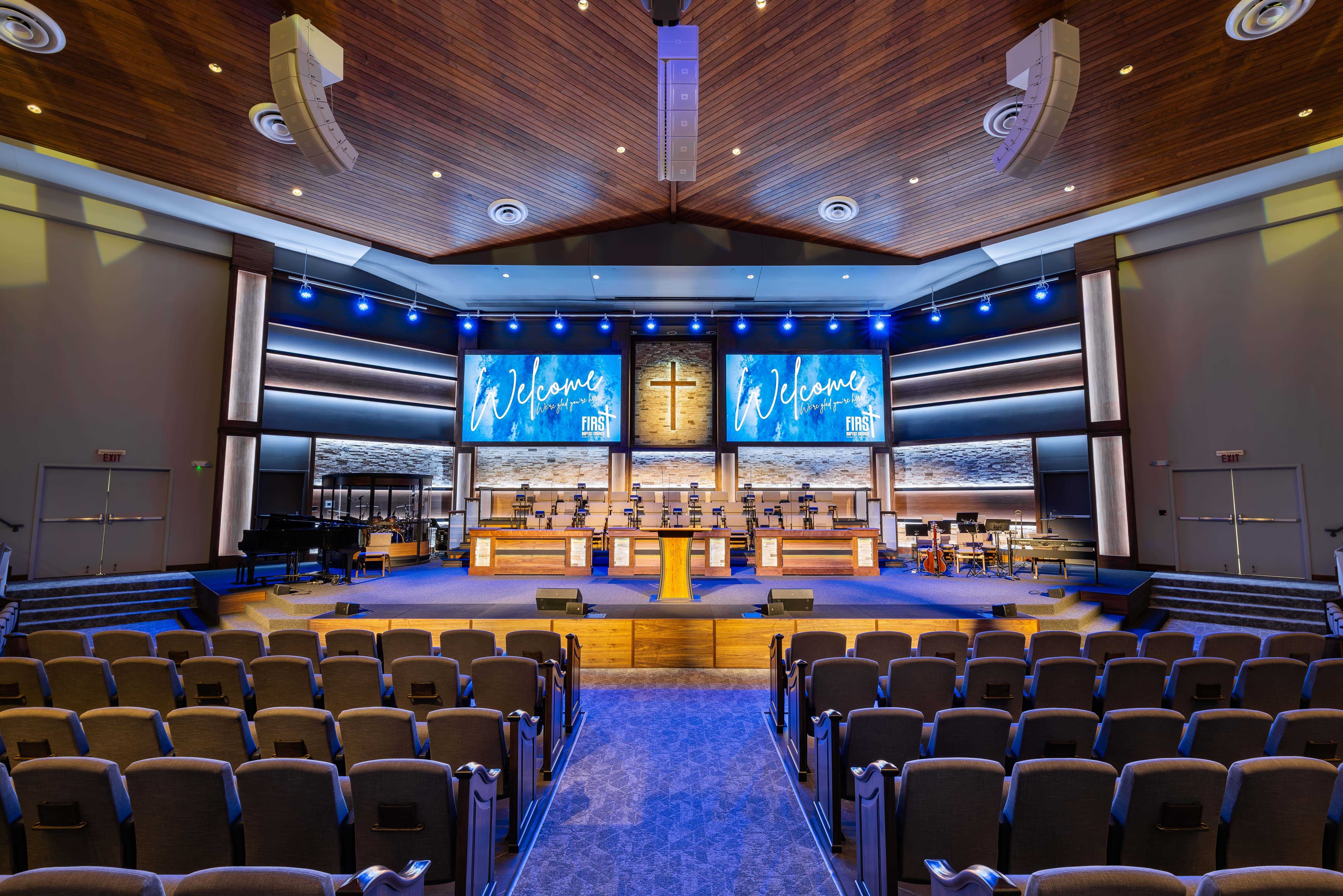 Edmonds First Baptist in Edmond, OK contracted Paragon 360 for an extensive, multi-million dollar sanctuary renovation project in 2024. The project opened in February of 2025 and included new audio, video and lighting systems, ReveLux LED walls, acoustical work, rigging systems, interior design, seating and custom fabricated architectural elements. Paragon also provided general contracting through it's very own Xperience Construction allowing for a complete turn-key, design-build project. See Profile!