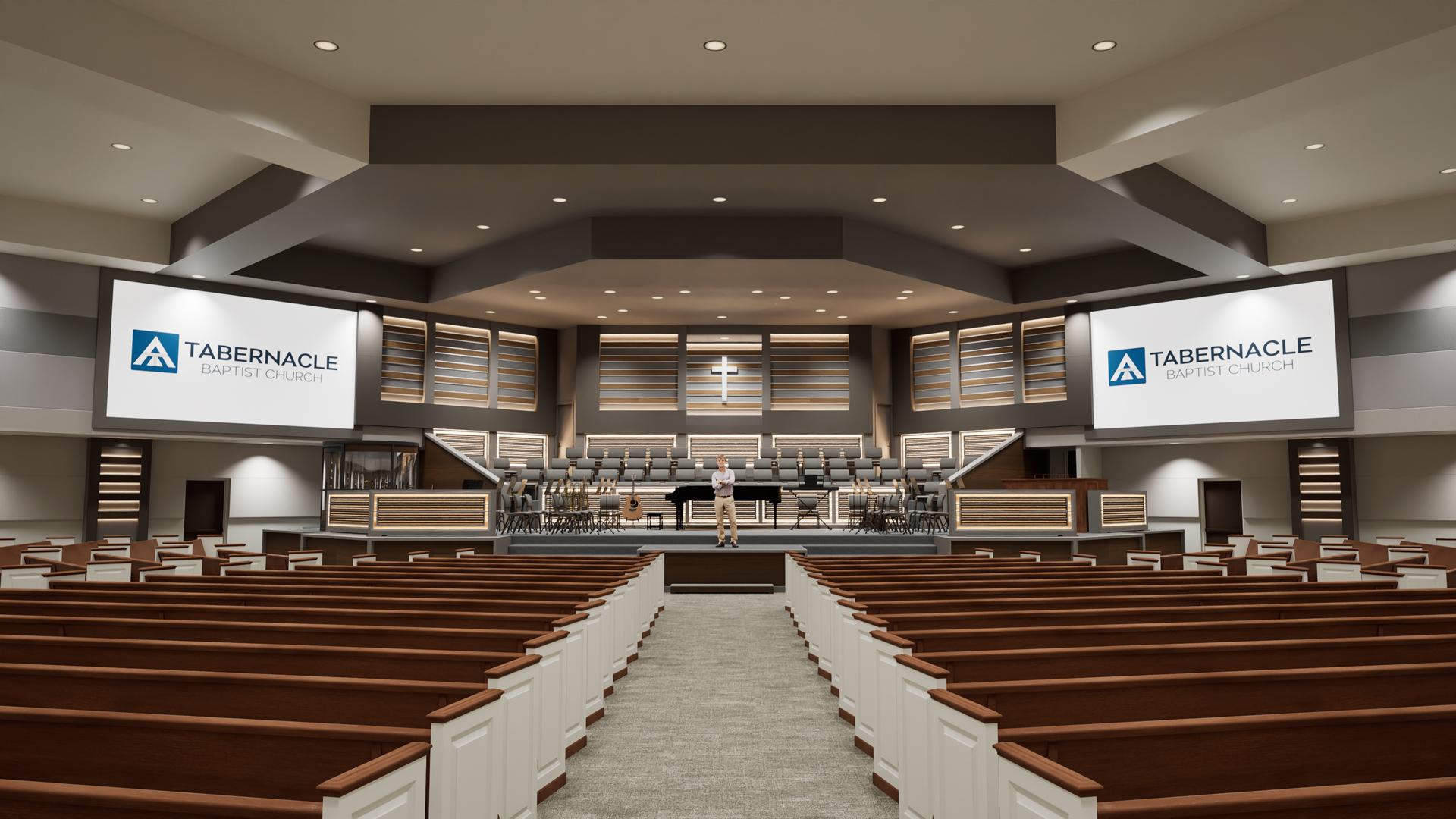 Tabernacle Baptist in Carrollton, GA has contracted with Paragon 360 for a renovation of their main platform area. The project will feature new stage and house-lighting systems, ReveLux LED walls Paragon’s custom scenic, staging, and architectural elements and extensive acoustical work. Paragon completed phase one of the project in 2020 which included renovations of hallways and lobby spaces surrounding the sanctuary.