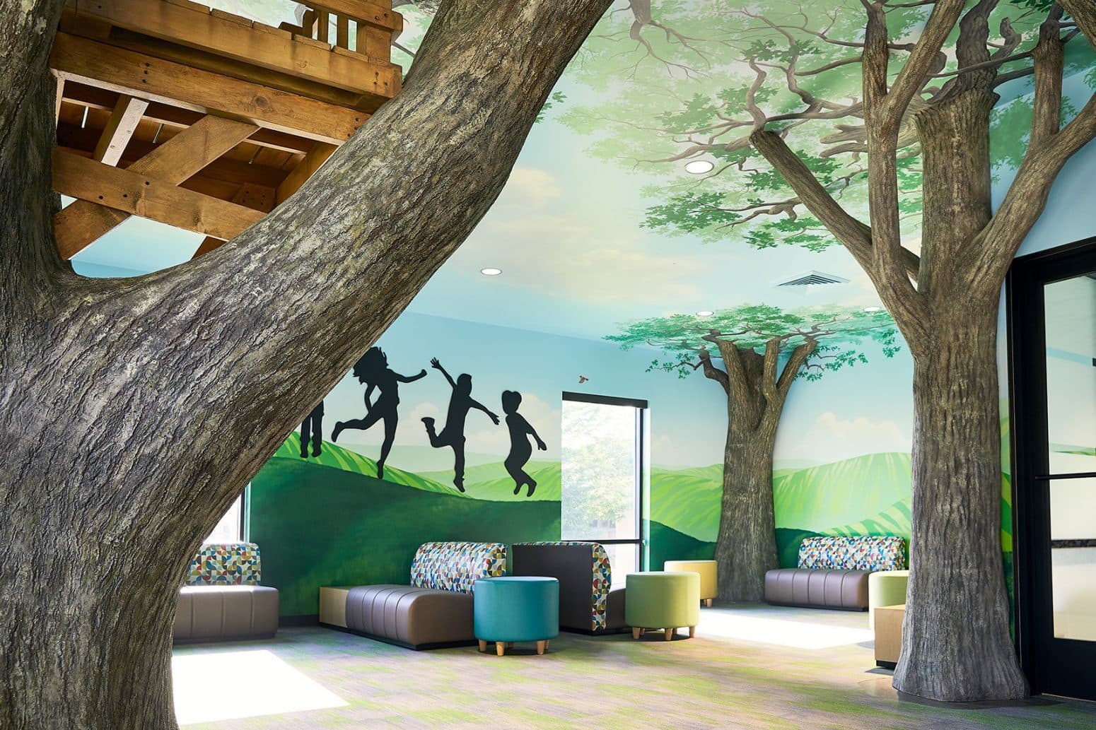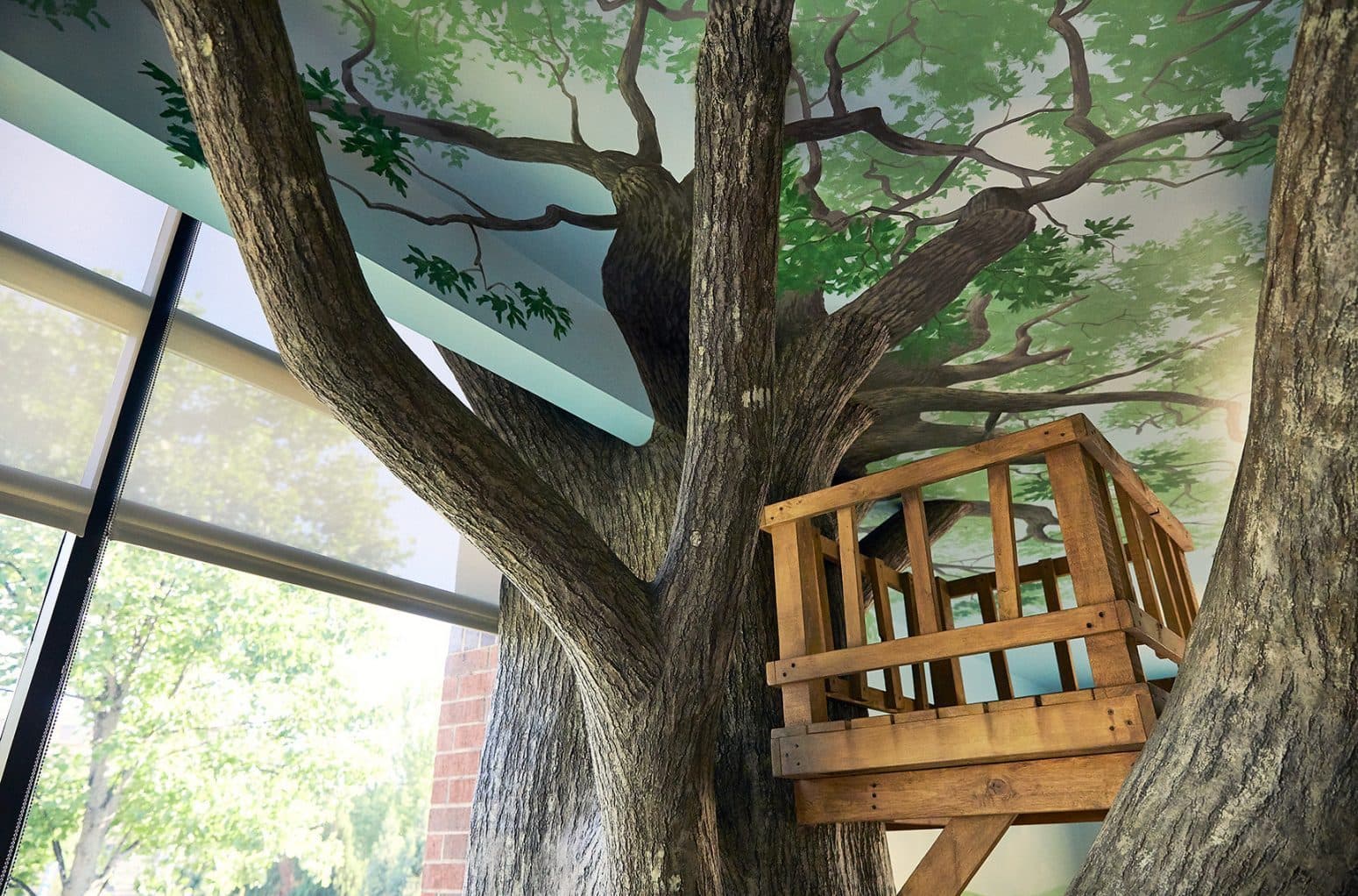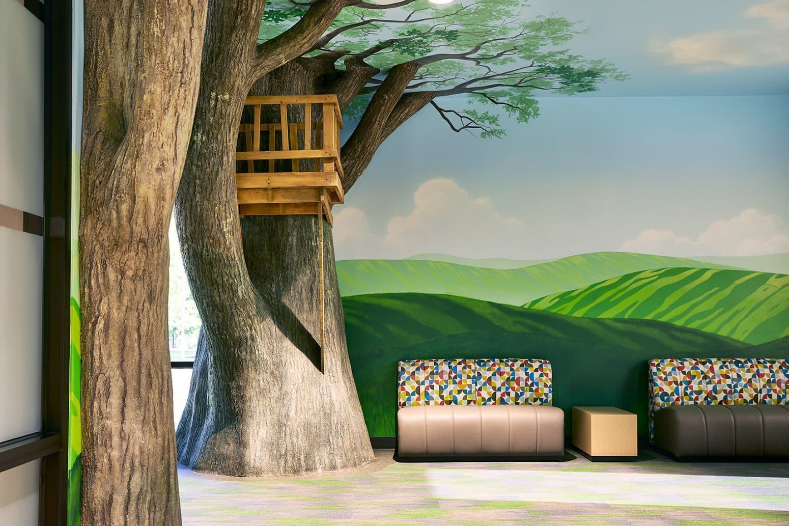 One of our all-time favorite projects, Cox Health's Pediatrics Wing was truly a joy to create. We started out with a white box room and turned it into a place for children to feel comfortable, entertained, and imaginative in just a few weeks. We were able to fabricate a real-life treehouse environment in partnership with Torgerson Design Partners. We were honored to help Cox Health create a place where kids can find relief and wonderment.